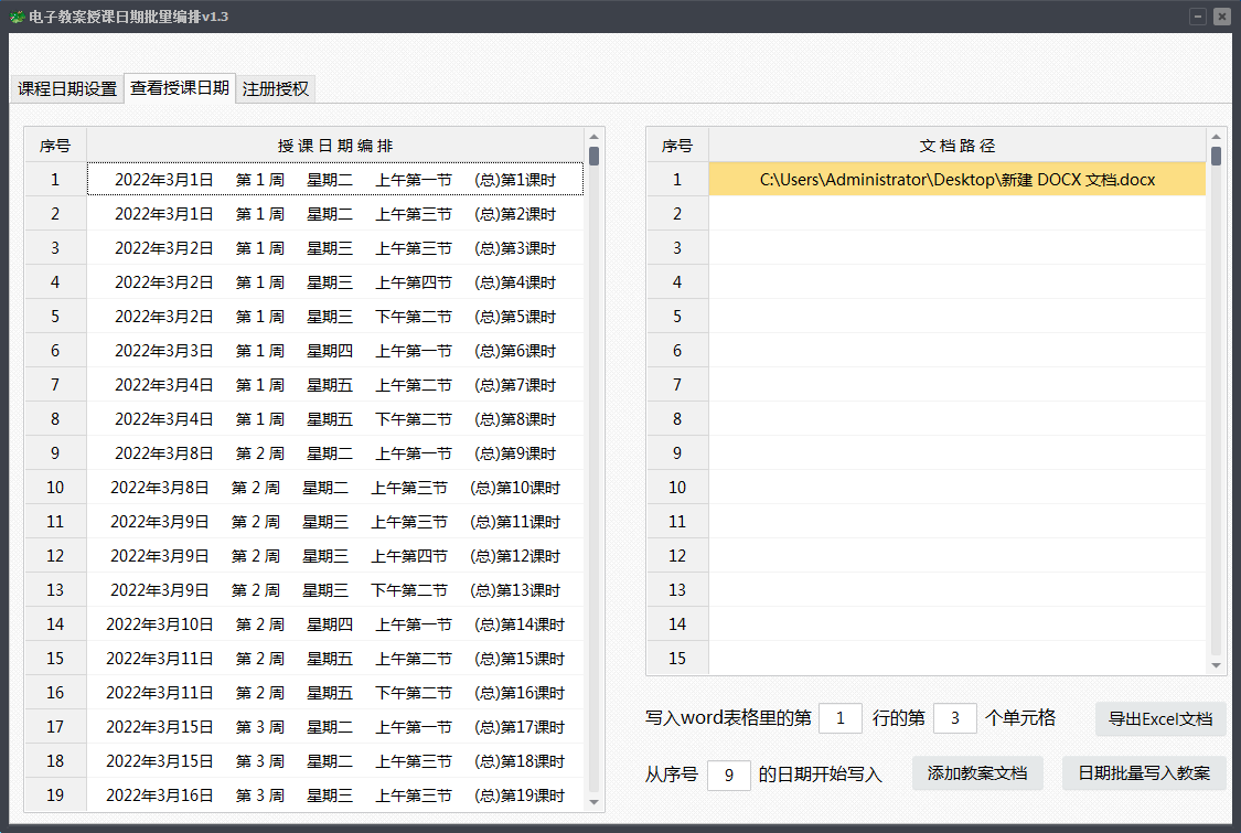 电子教案授课日期批量编排